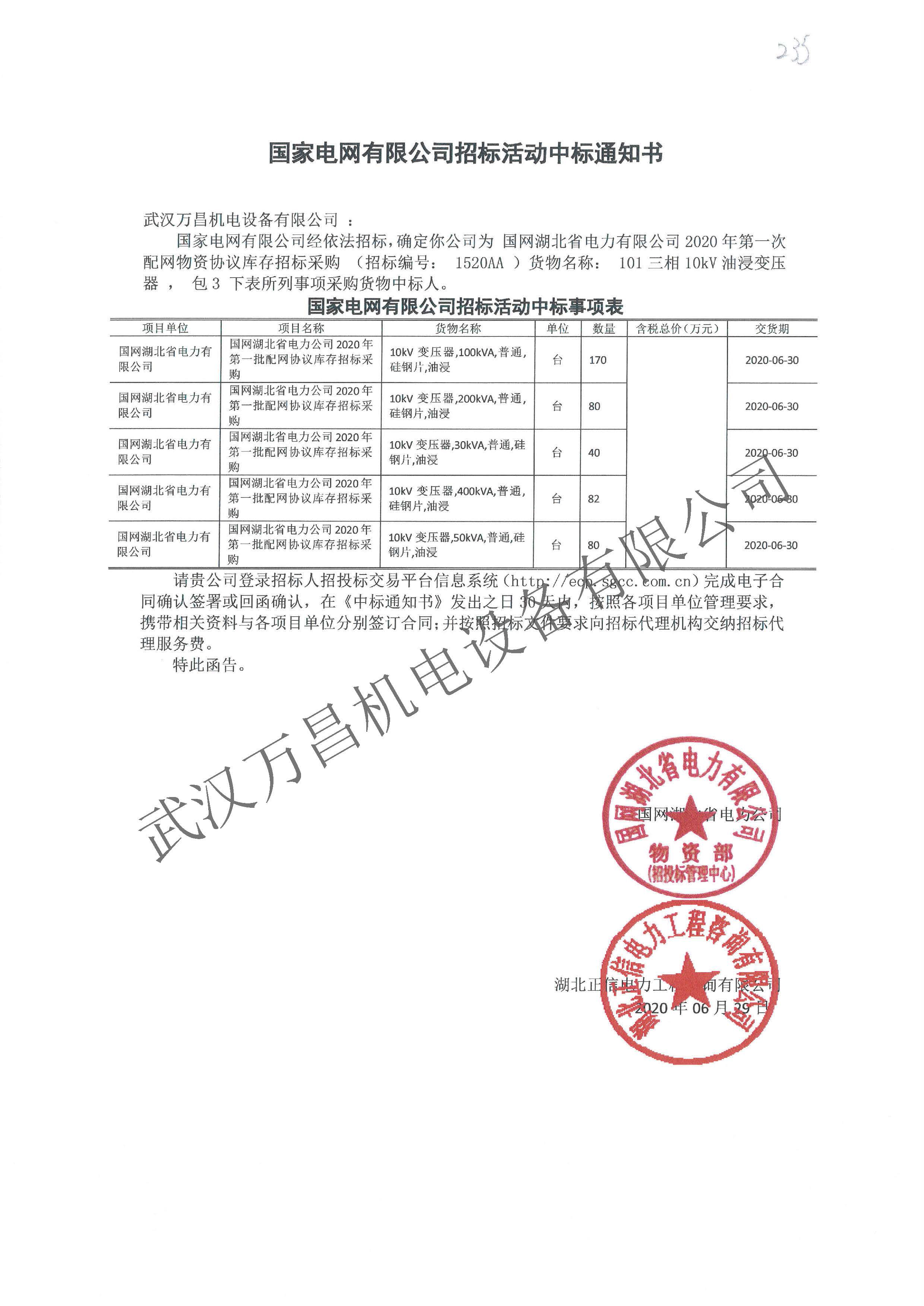 2020年中標國網(wǎng)湖北省協(xié)議庫存項目